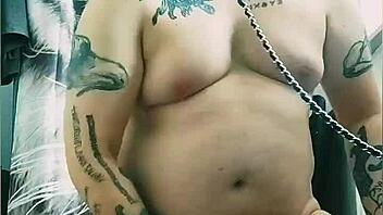 wife with big tits cheats on her husband by fucking a bitch in stockings