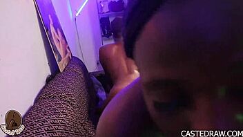 in this homemade pov, an ebony chubby couple does sloppy dirty cock worship