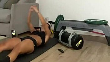 aurora stretches in sexy booty shorts during yoga