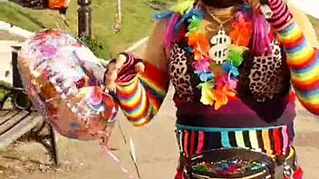 Curious about a big shemale cumshot in a unique performance?