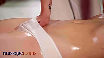 Smiling czech brunette teen gives deep blowjob titty fuck cumshot