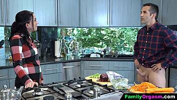 섹시한 여학생이 의붓아빠를 부엌에서 뜨겁게 유혹해 박아
