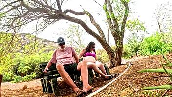 a steamy blowjob unfolds in the lush botanical garden