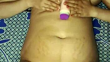 Indian bhabhi rams huge dildo deep in wet hairy pussy moaning