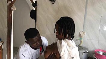 Pregnant african beauty fucked doggystyle in kitchen