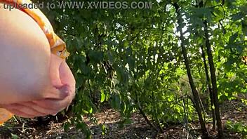 pregnant chubby milf wife milks huge lactating tits outdoors in kinky public show