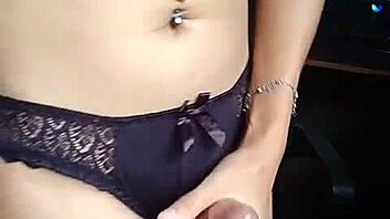 Solo lingerie ladyboy beauty jerks off and cums hard