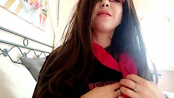 Nerdy gamer girl Silvia shares her self-shot webcam video with excitement