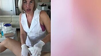 Russian nurse milf, show me that smooth shaved pussy under latex gloves in hospital play