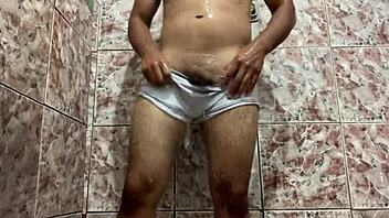 took off white underwear in shower for masturbation 😈