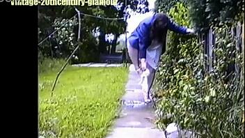 gorgeous curvy mature with fat ass flashes in leather skirt outdoor tease