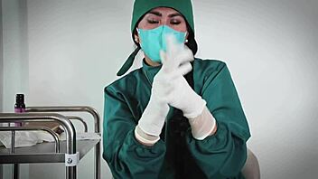 Latex nurse gloves fetish drives patient wild in hospital play