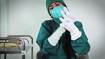Latex nurse gloves fetish drives patient wild in hospital play