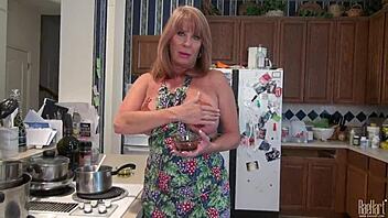 big titted mature housewife raehart pleasures kitchen uniform fuck