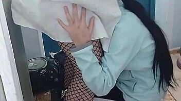 Giapponese deepthroat in calze finisce con creampie selvaggio