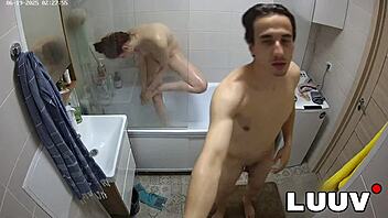 Luuv esteban and foxy shower flashing natural tits