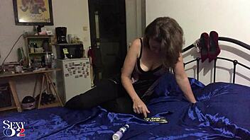 french slut in satin outfit gets wild in bed