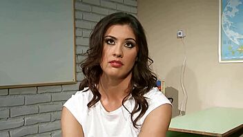 Four-eyed 19 yo Leya assfucked after intense casting interview