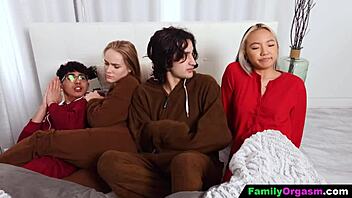 hot stepmothers foursome banging young 18+ stepsons in wild group