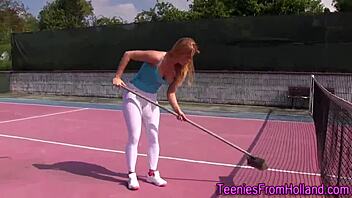 Tennis Teen Rubs Tight Pussy Outdoors in Socks