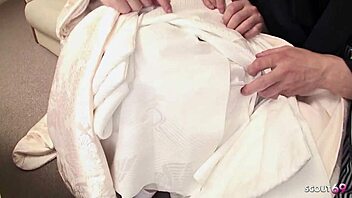 Heart pounding as horny asian bride takes creampie from stud before vows