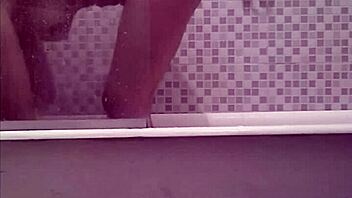 Cute latina carla fingers her naughty pussy in the shower bathing