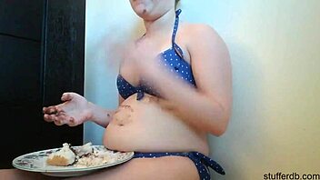 Chubby teen, wanna watch her messy cake feast?