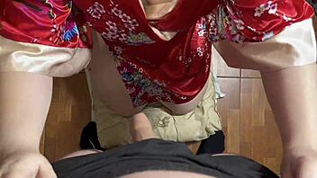 Housewife in nightgown jerks me off and takes it doggystyle