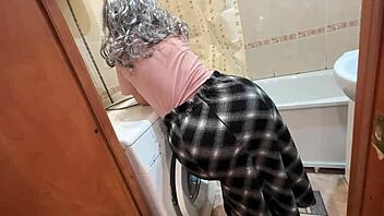 Stepmom with big tits bathes and delivers bathroom blowjob before anal