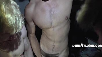 Twink submits fully to his fraternity brothers in rough hardcore action