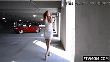 a milf flashes her upskirt panties outdoors in heels and skirt