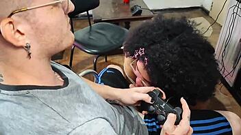 Sofie Lollipop loses video game to Carmona and sucks his cock until he cums in her mouth 😈🍆💦
