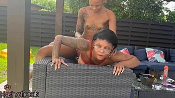 Kashofficials Getting Strapped By Ebony Renity Love On The Balcony Passionately