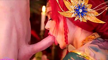 x-mas glory hole adventure unfolds as jinx cosplay babe sucks and fucks big tits bouncing in homemade costumes