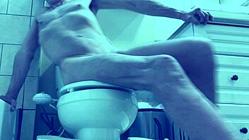 solo bodybuilder massages pelvis hard for explosive therapeutic cum release