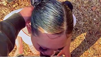 asian babe chokes on huge cock outdoors sloppy blowjob!