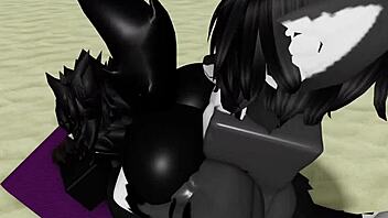 She rides his monster cock hard doggystyle on the beach roughly