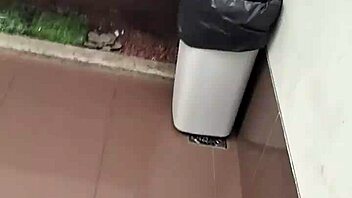 i cum hard masturbating hairy pussy in public toilet