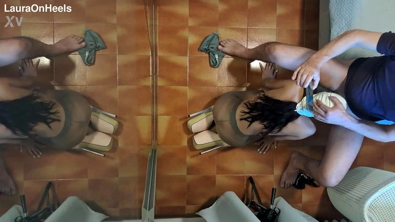 Milf in Pantyhose Kneels for Blowjob and Cum Swallow. Heels Add Spice.