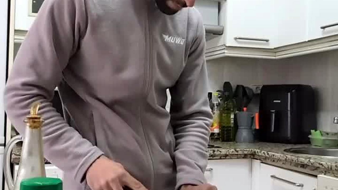 Cocino una tortilla me desnudo me pajeo y me corro sobre la comida con big cock 🍆