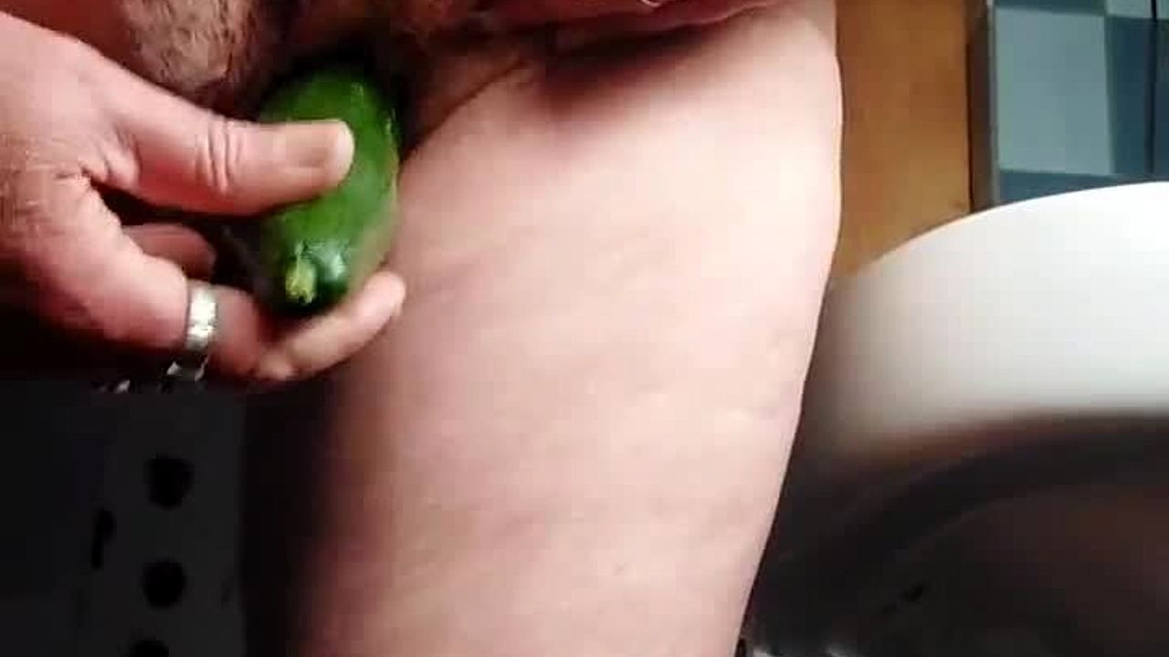 Granny slut fucks hairy pussy with cucumber deep