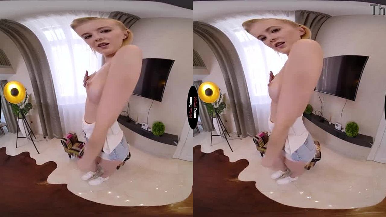 Blonde masturbates to orgasm in pov taboo virtual scene