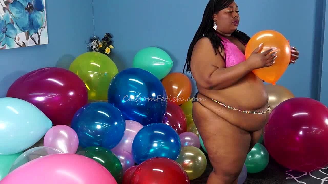 Aminah the ebony model gorges on whipped cream while popping balloons with her fingernails