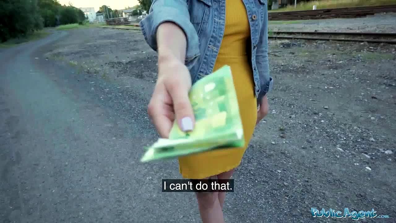 Sexy redhead waitress bangs doggystyle in public spot